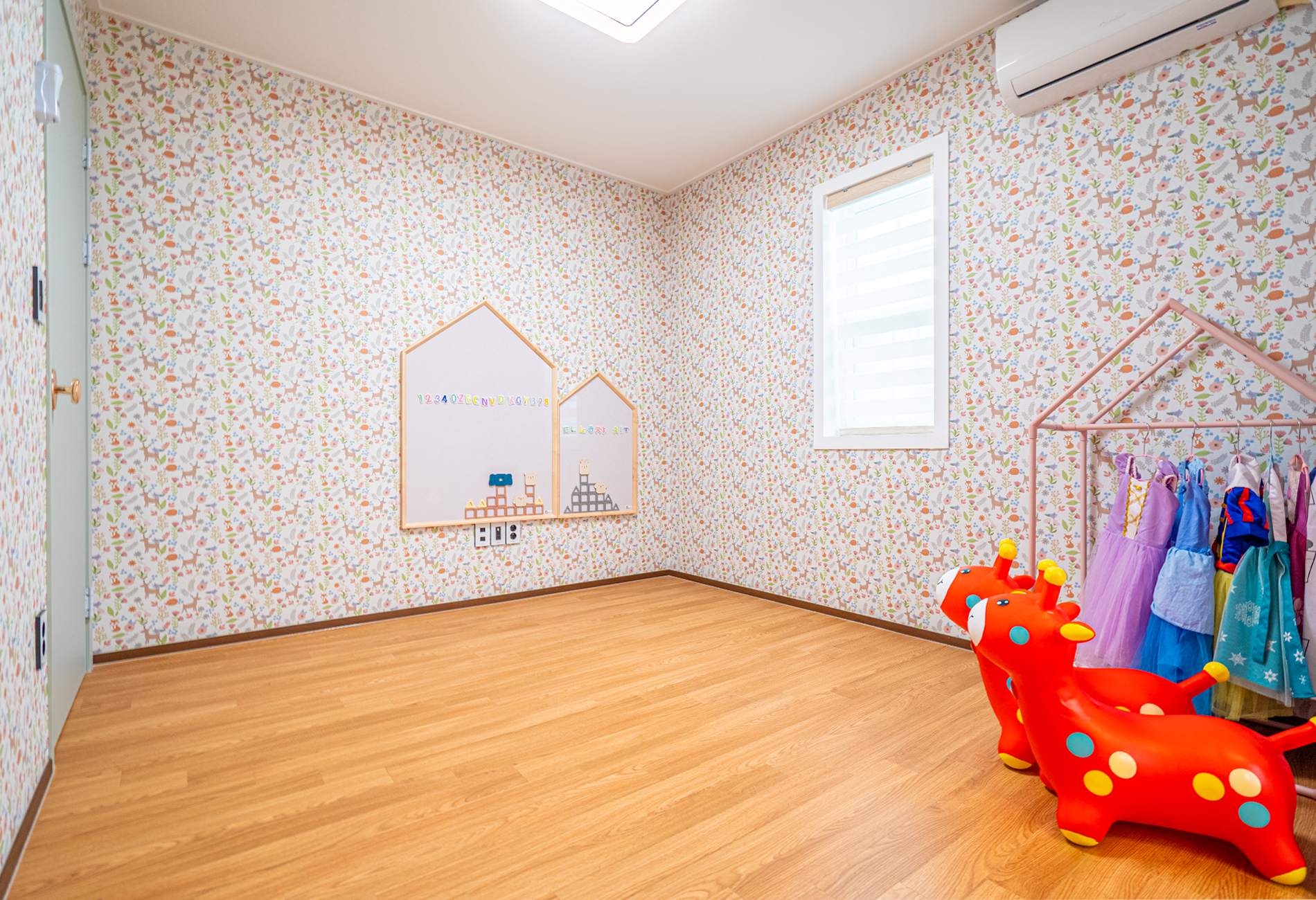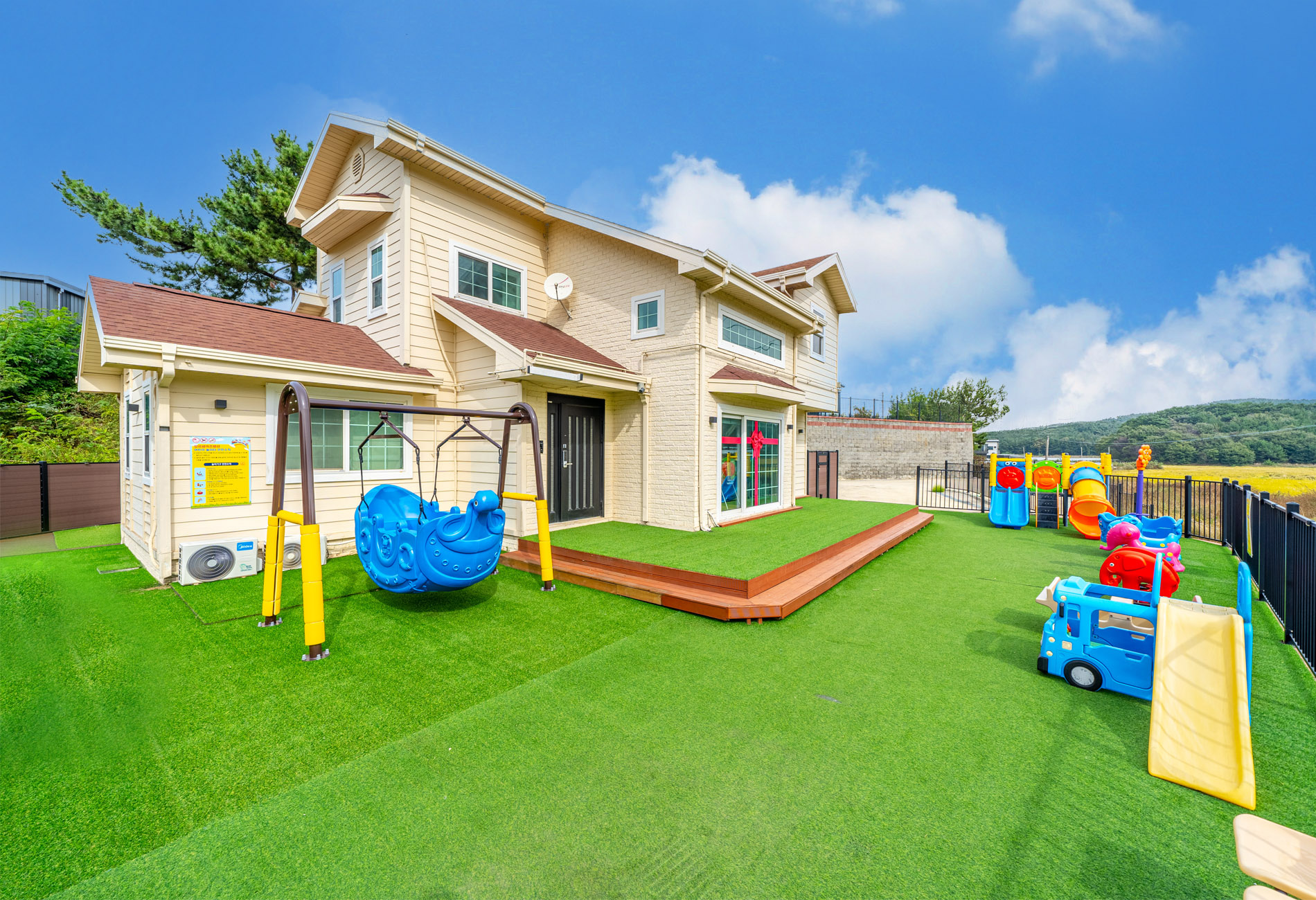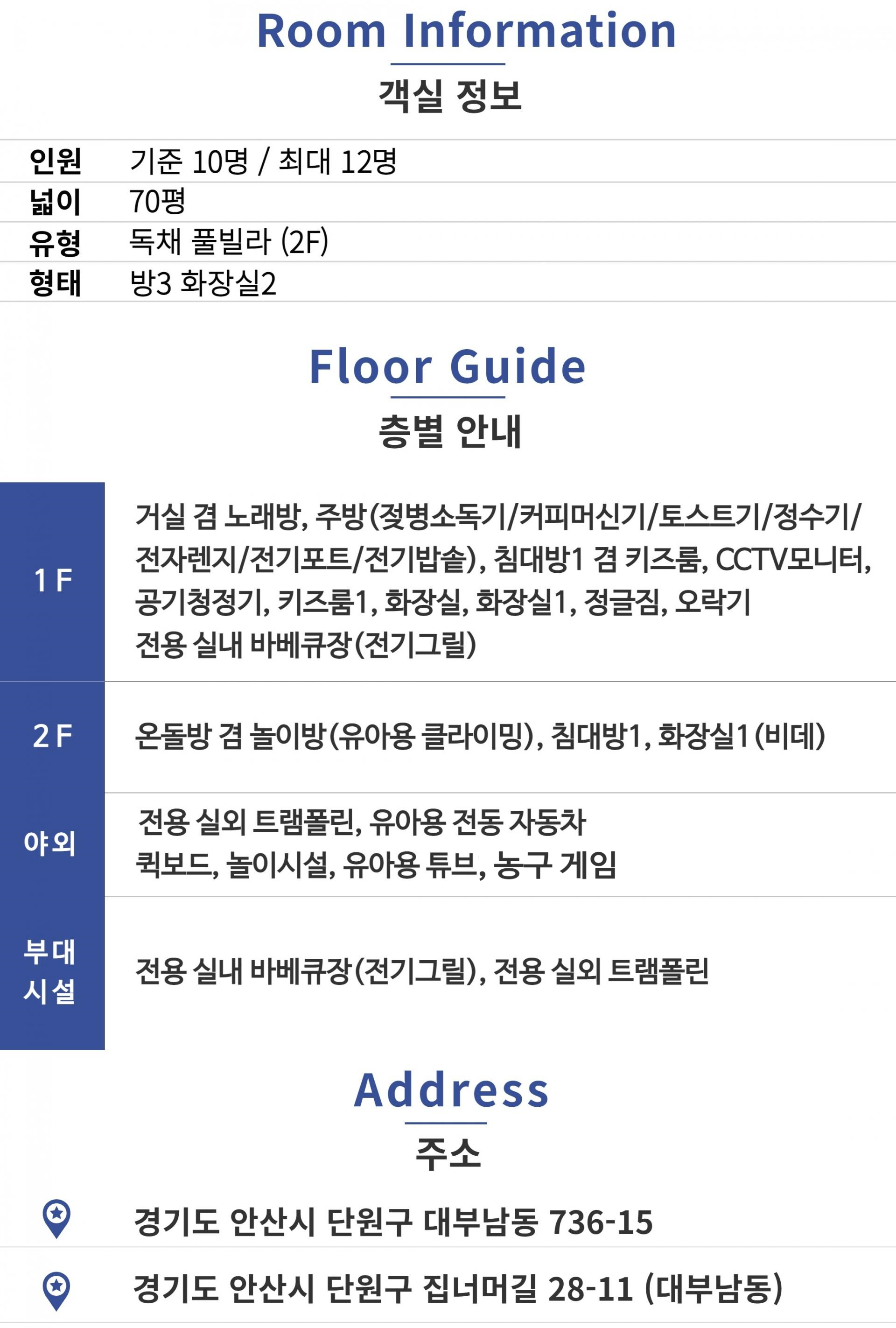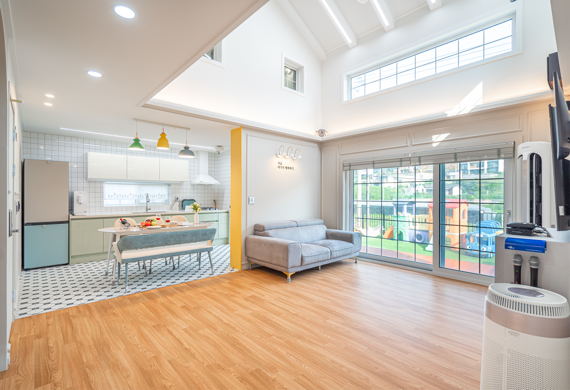 거실 겸 노래방, 주방, 침대방 겸 키즈룸1, 정글짐, 오락기1, 화장실1,  전용실내바베큐장