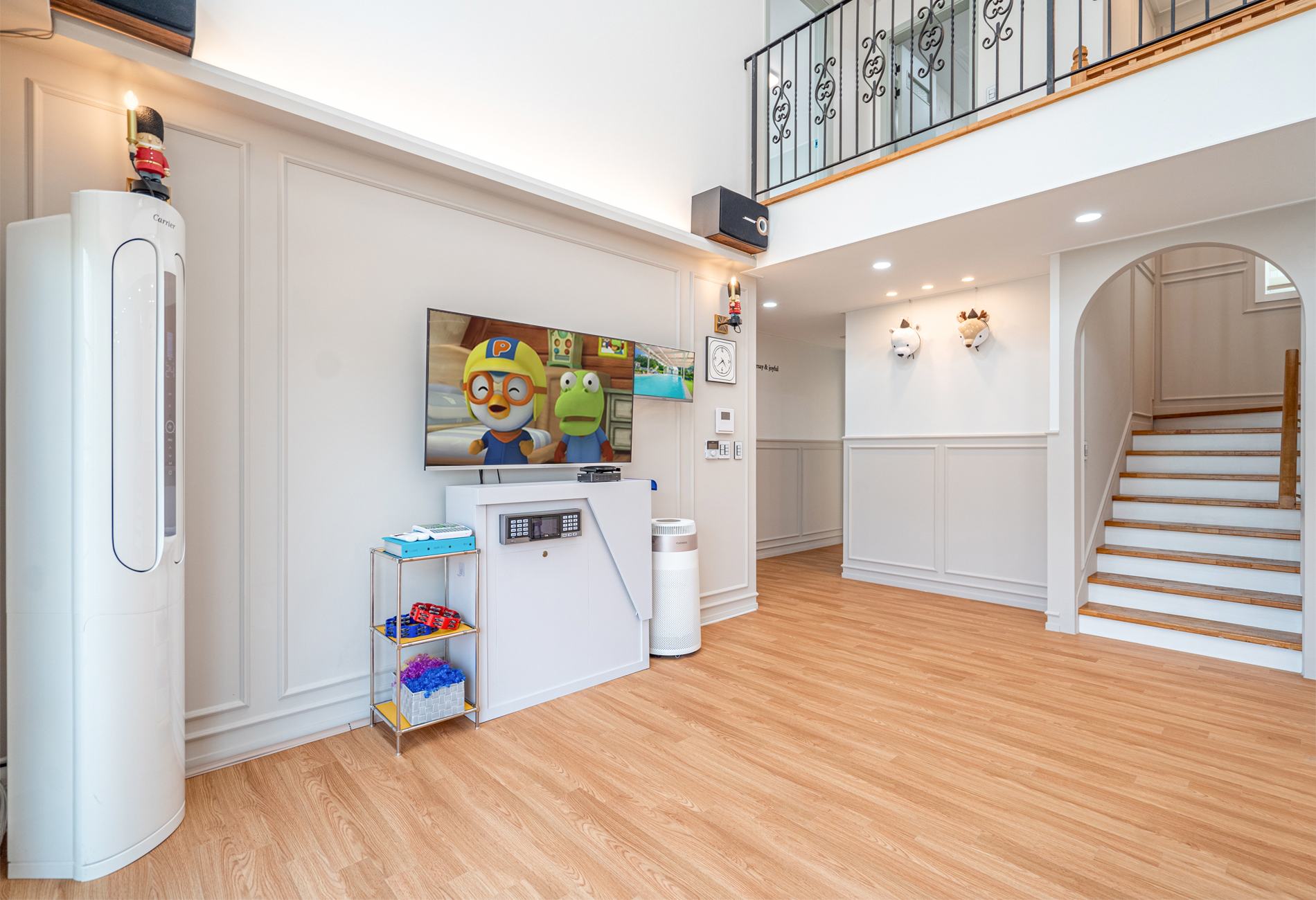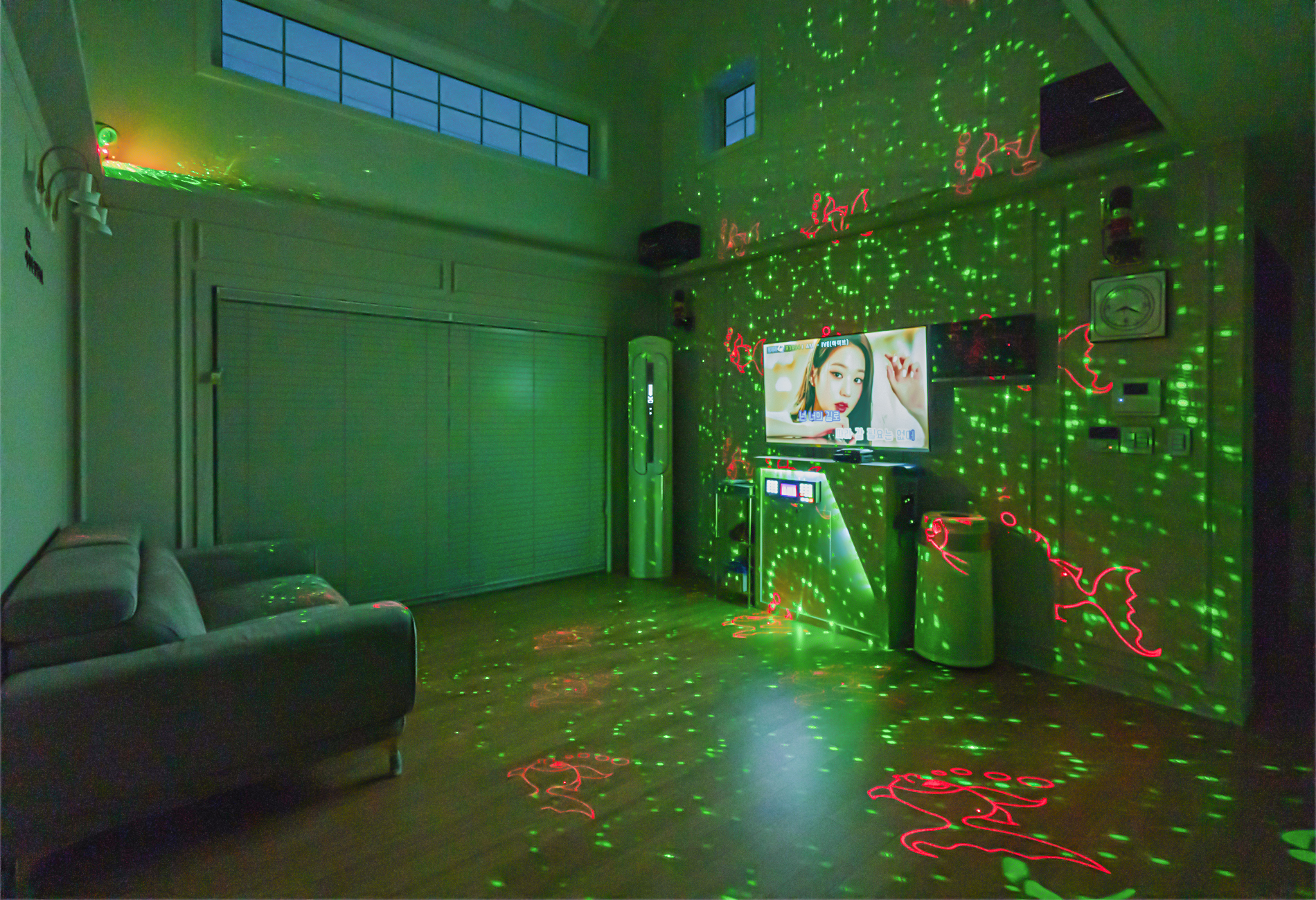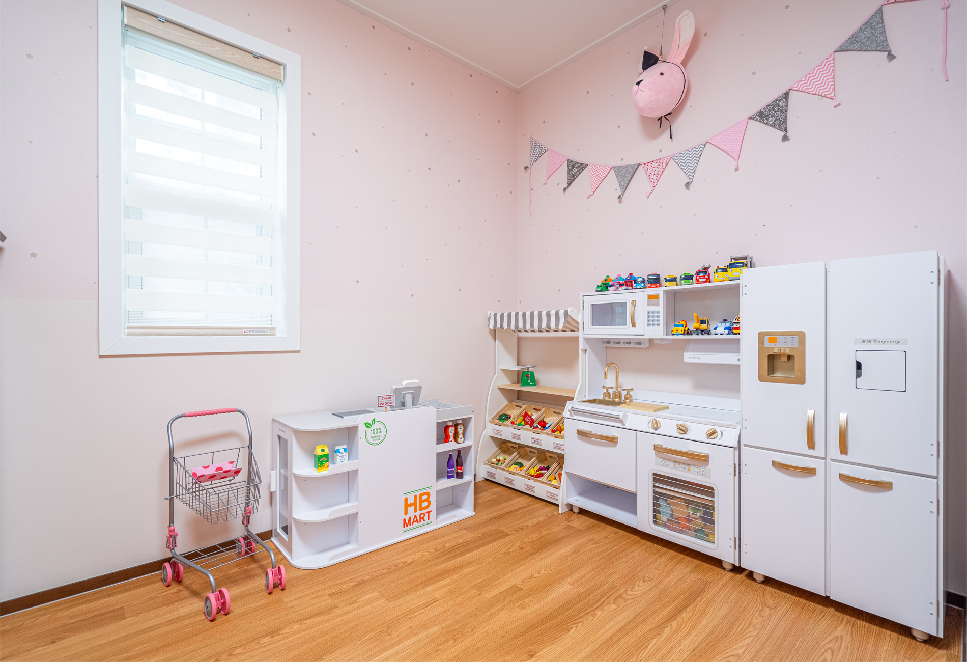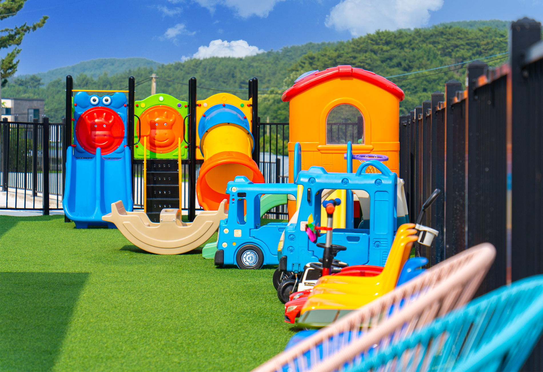 거실 겸 노래방, 주방, 침대방 겸 키즈룸1, 정글짐, 오락기1, 화장실1,  전용실내바베큐장