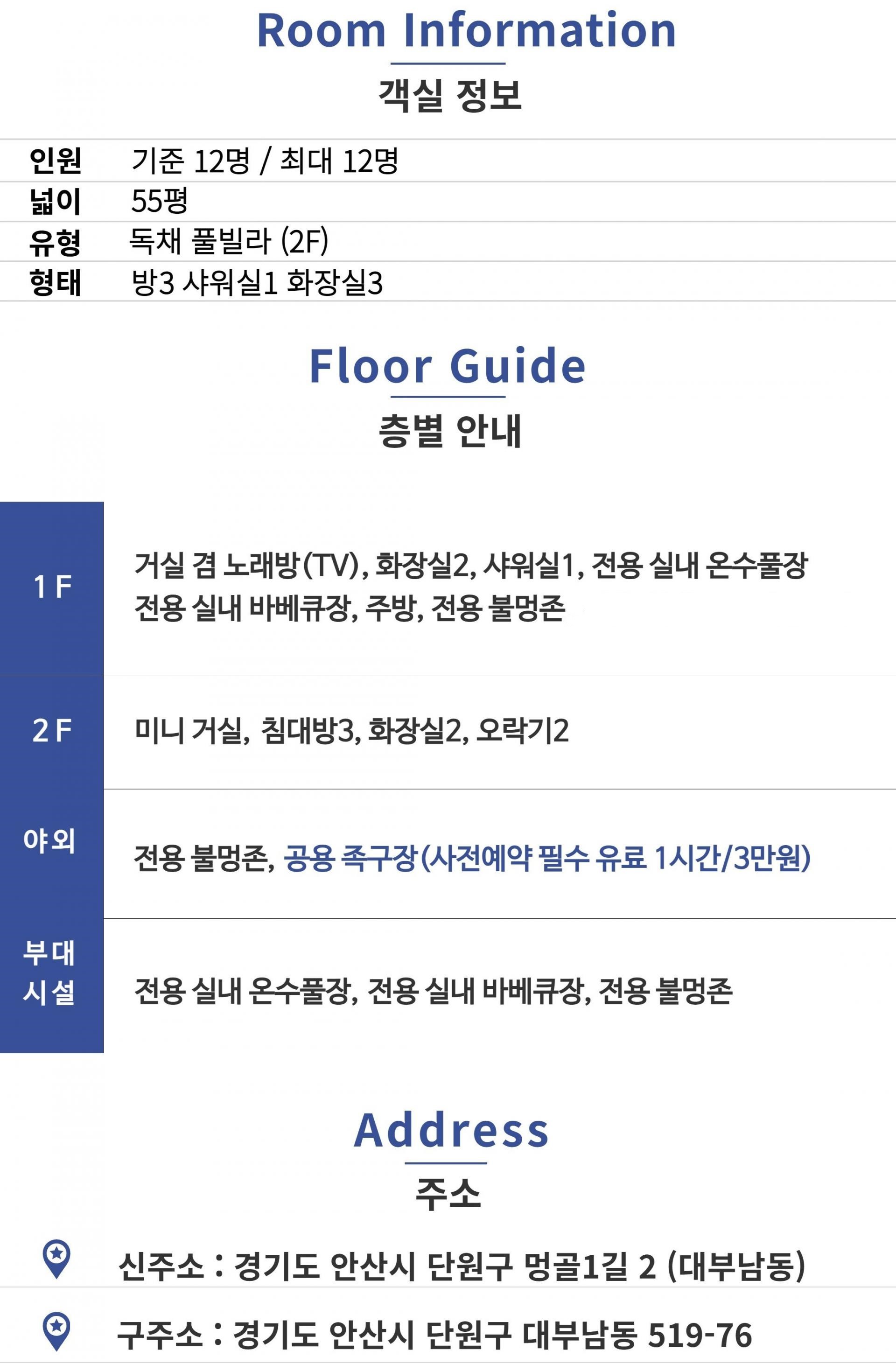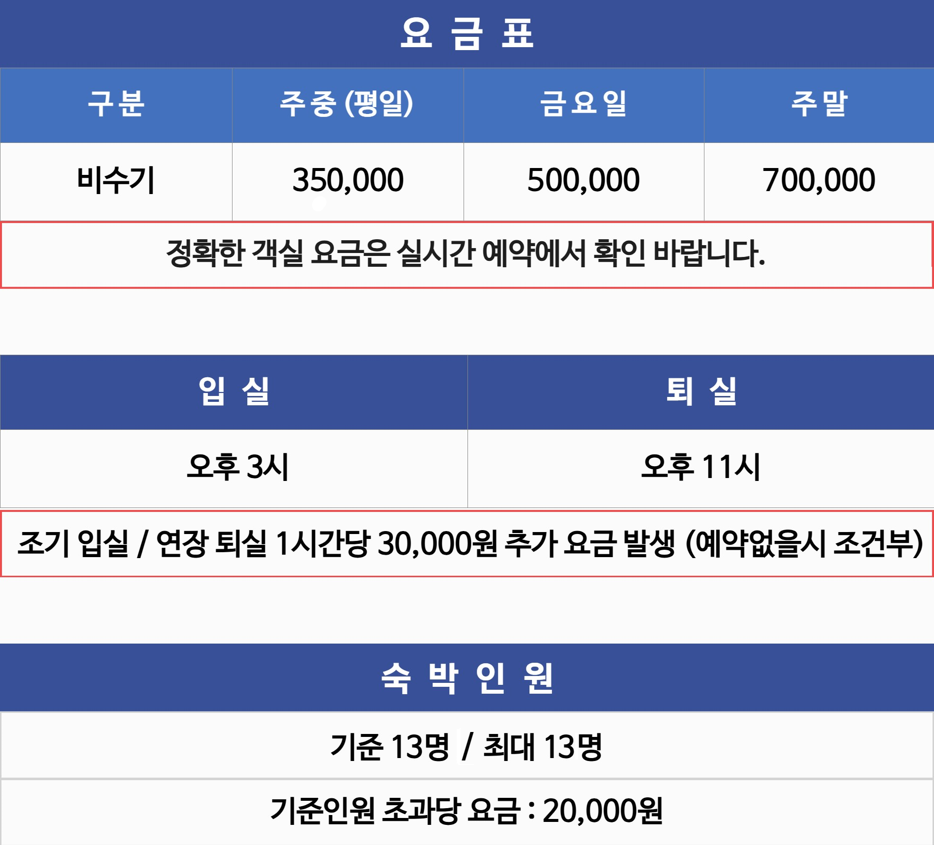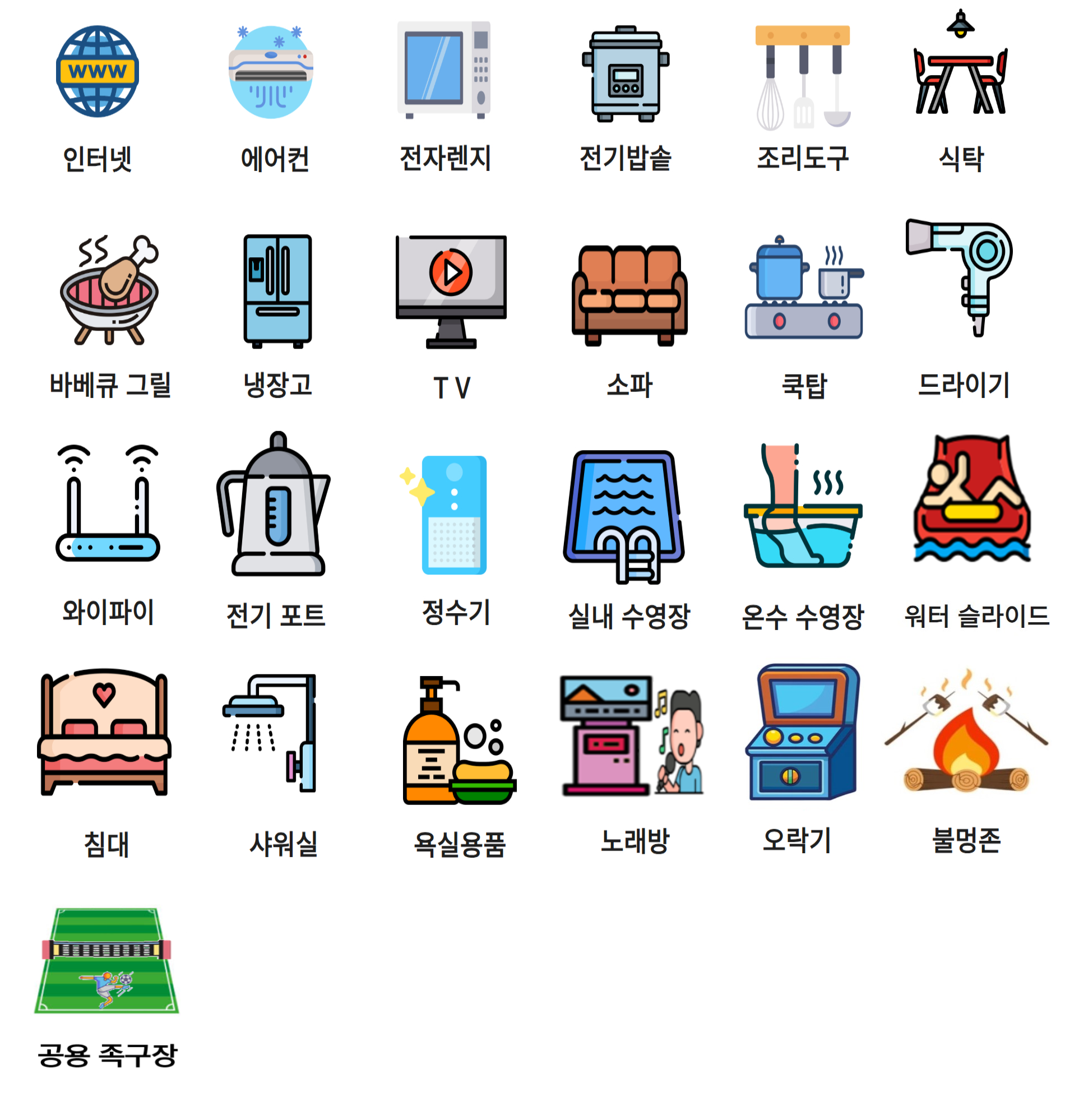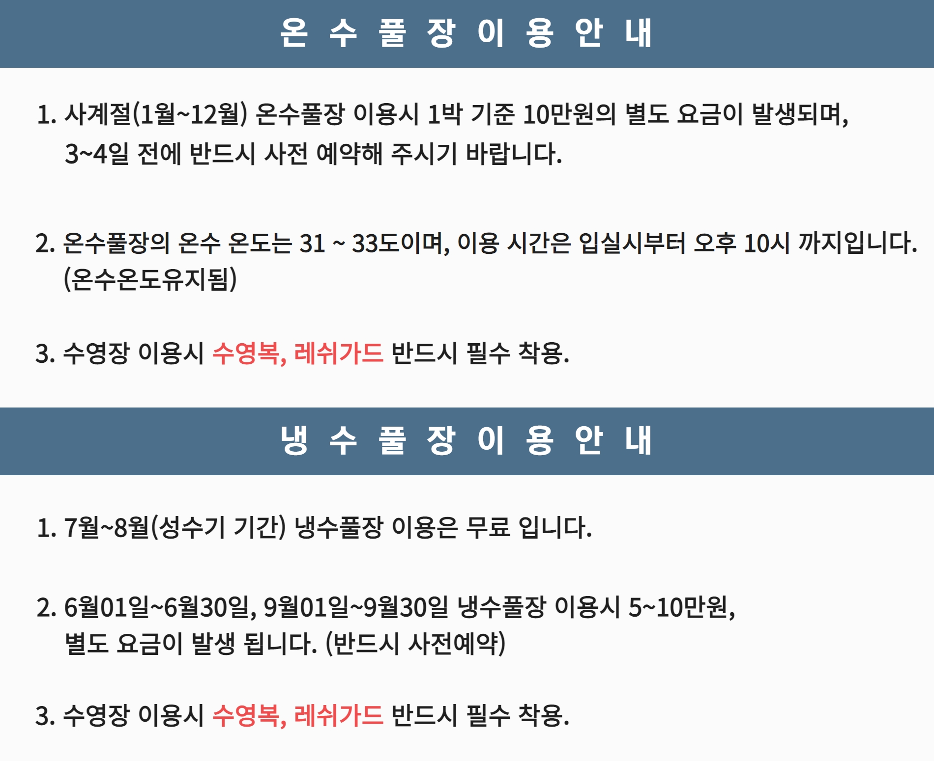 워크샵, 가족, 커플여행 등 다양한 컨셉의 펜션예약이 가능하며 펜션 내 개별 풀장, 전용 바비큐장, 노래방, 전용족구장, 스포츠 게임 등 다양하고 프라이빗한 여행을 즐기실 수 있습니다.