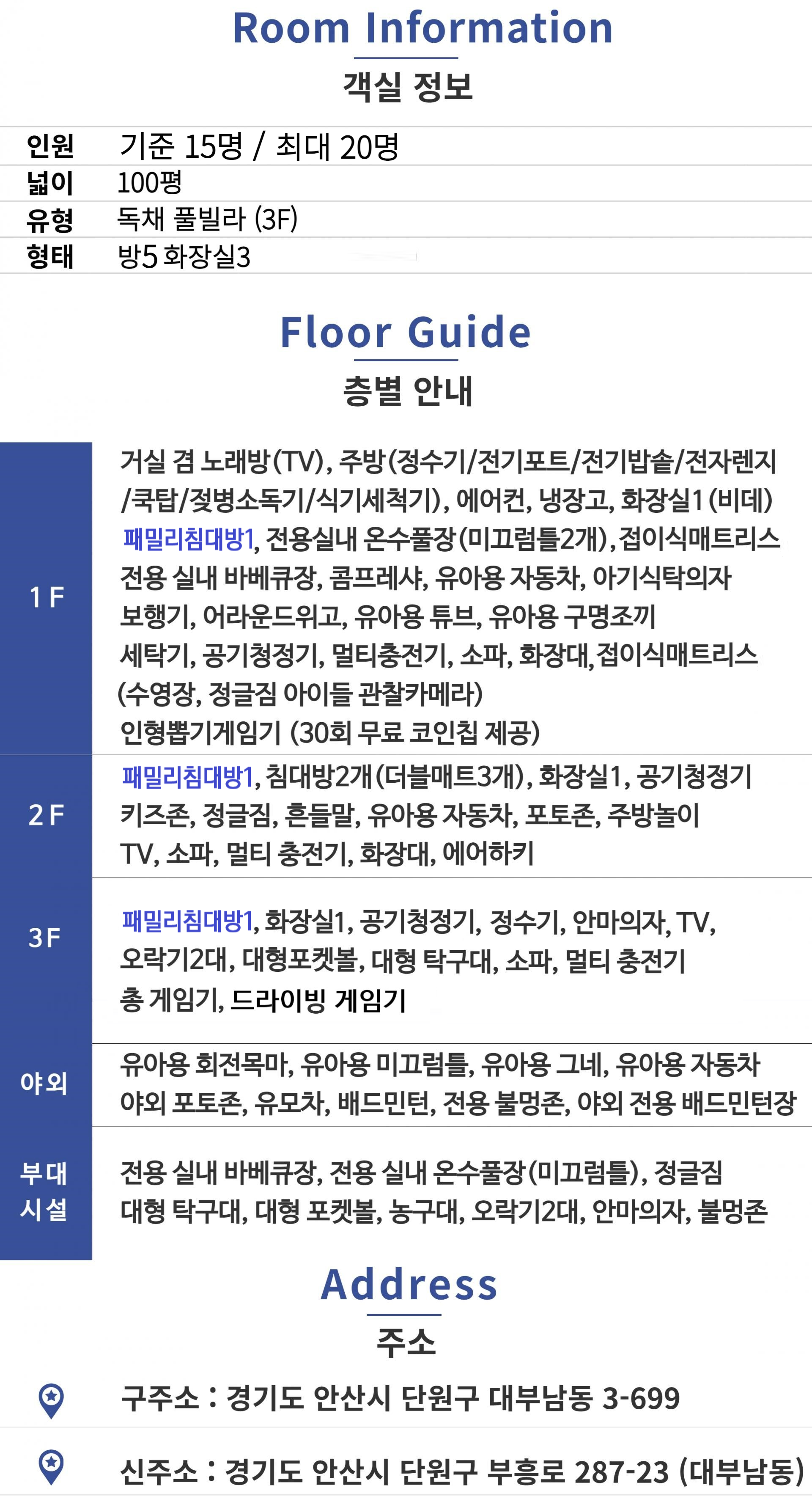 거실,침대방2(베드3개),패밀리침대방1,화장실1,키즈존(정글짐),유아용 자동차,보드게임,에어하키