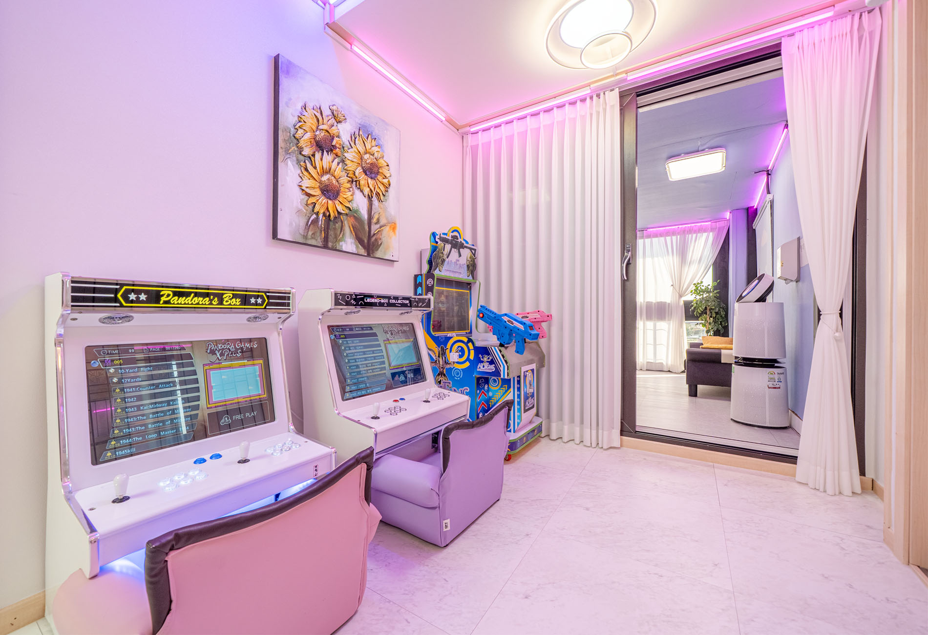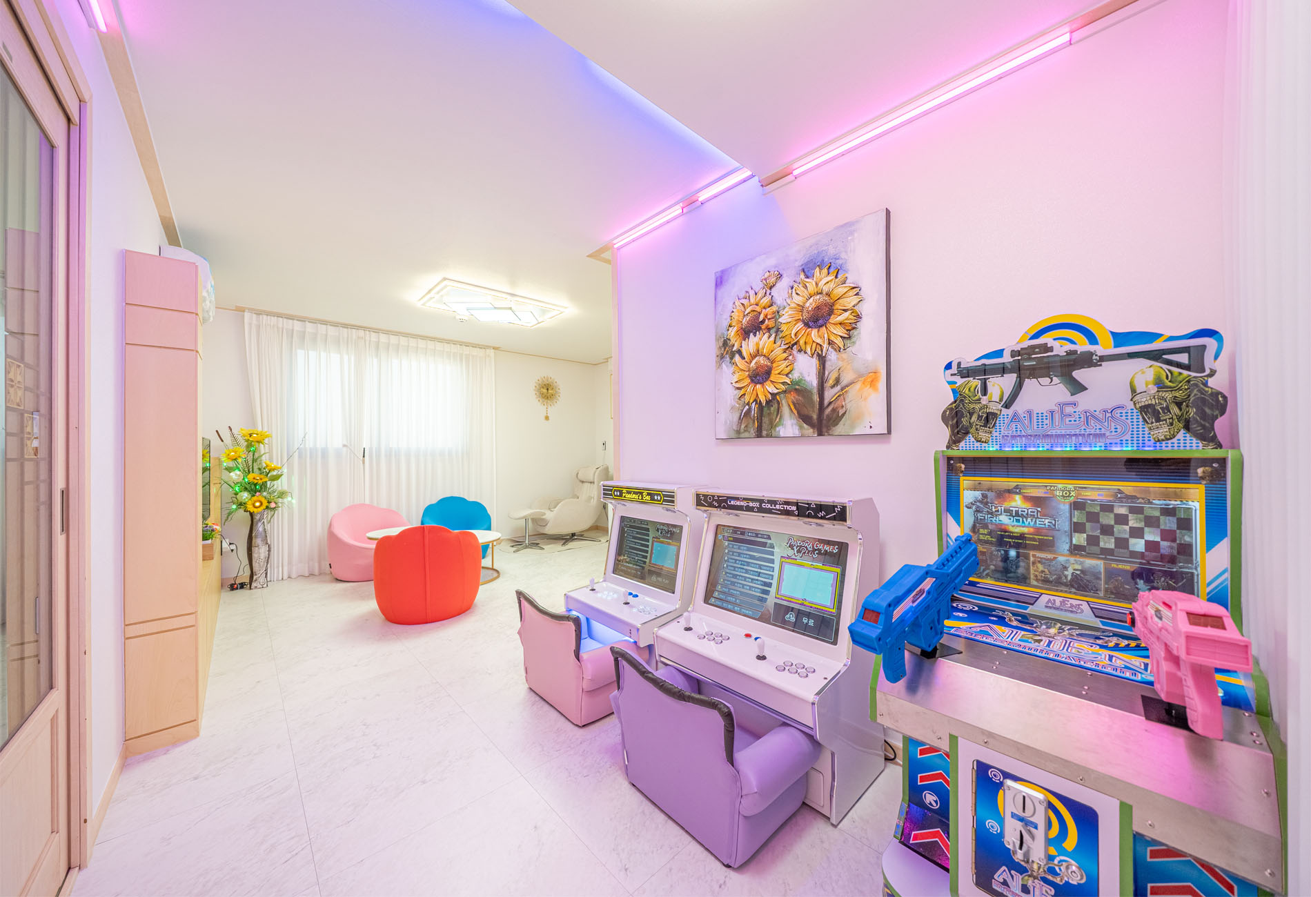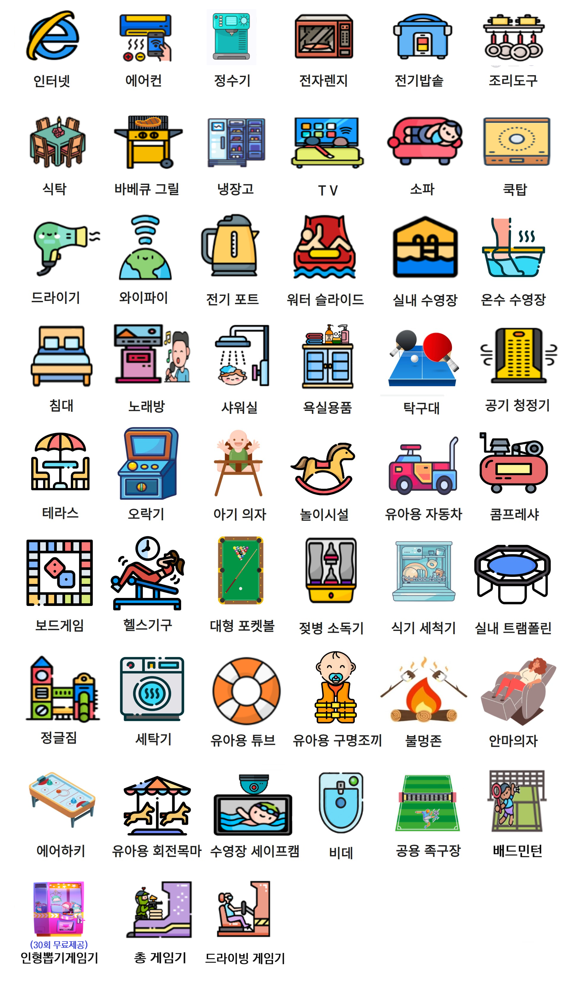 거실,정수기, 안마의자, 화장실1, 오락기2,총게임기,플레이룸(탁구대,포켓볼,드라이빙게임기)
