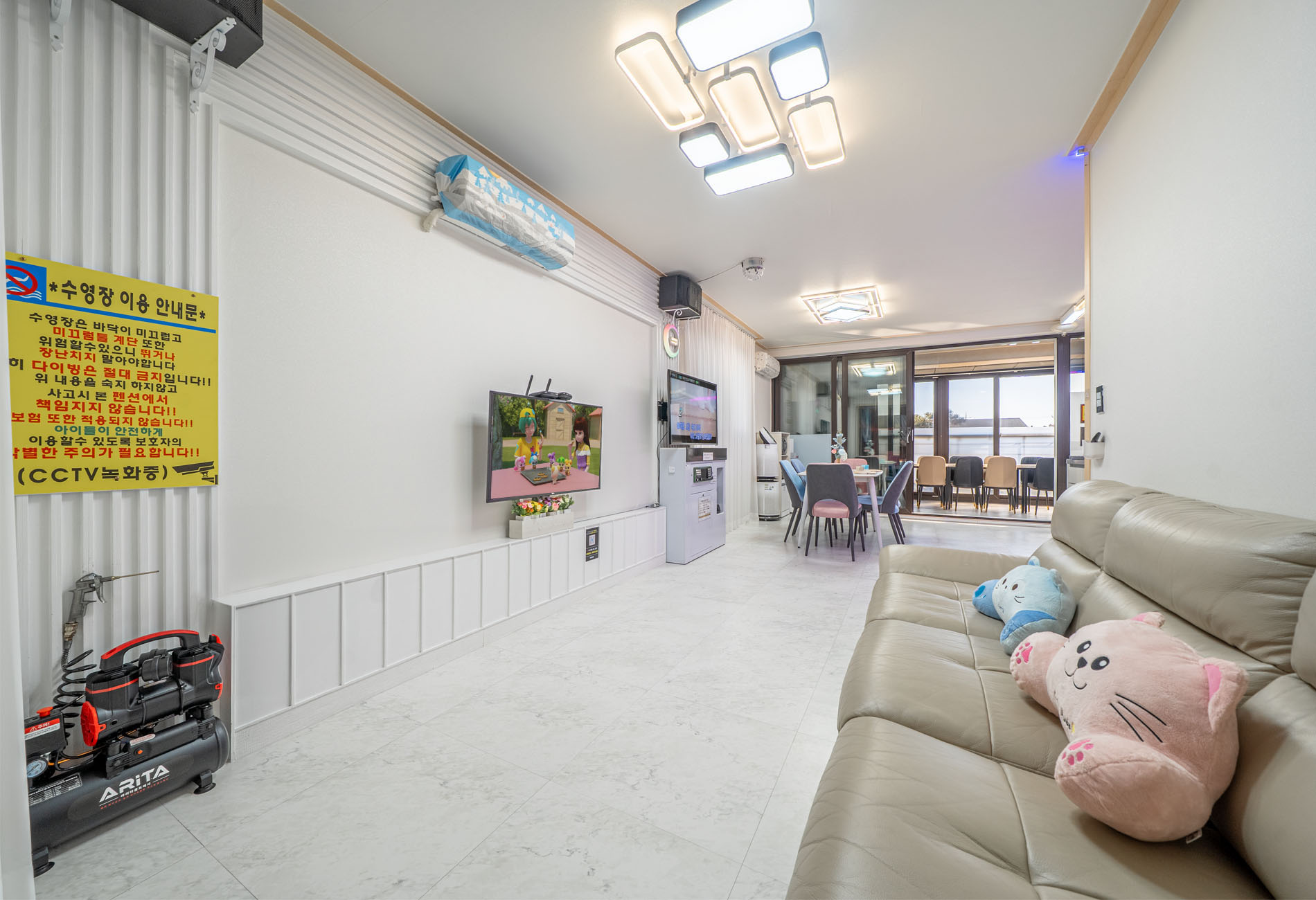 거실 겸 노래방 주방, 온돌방1,화장실1,공기청정기,콤프레샤, 전용 실내온수풀장, 전용 실내바베큐장