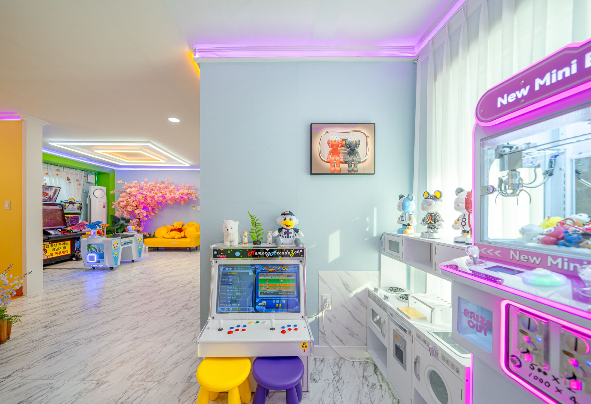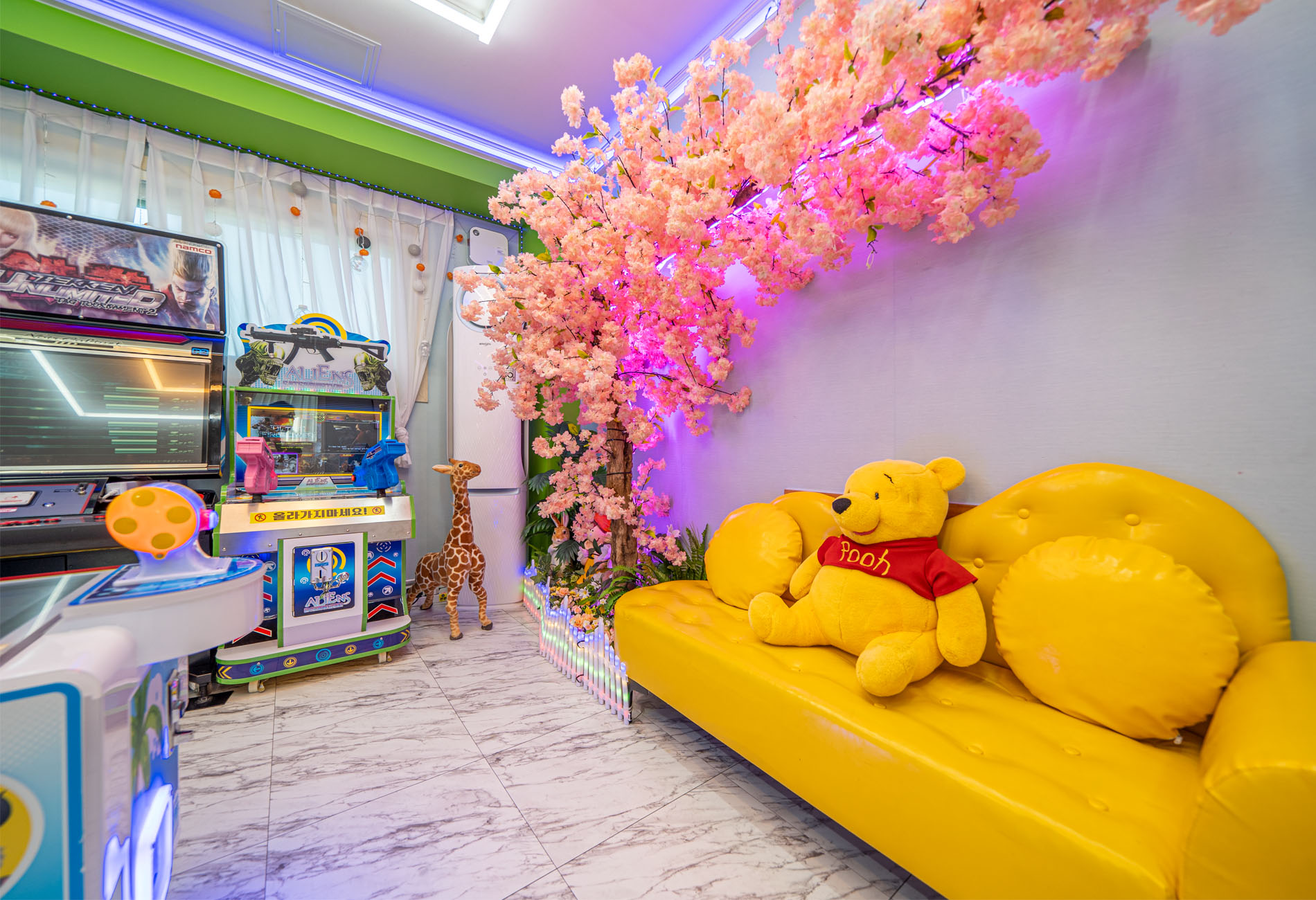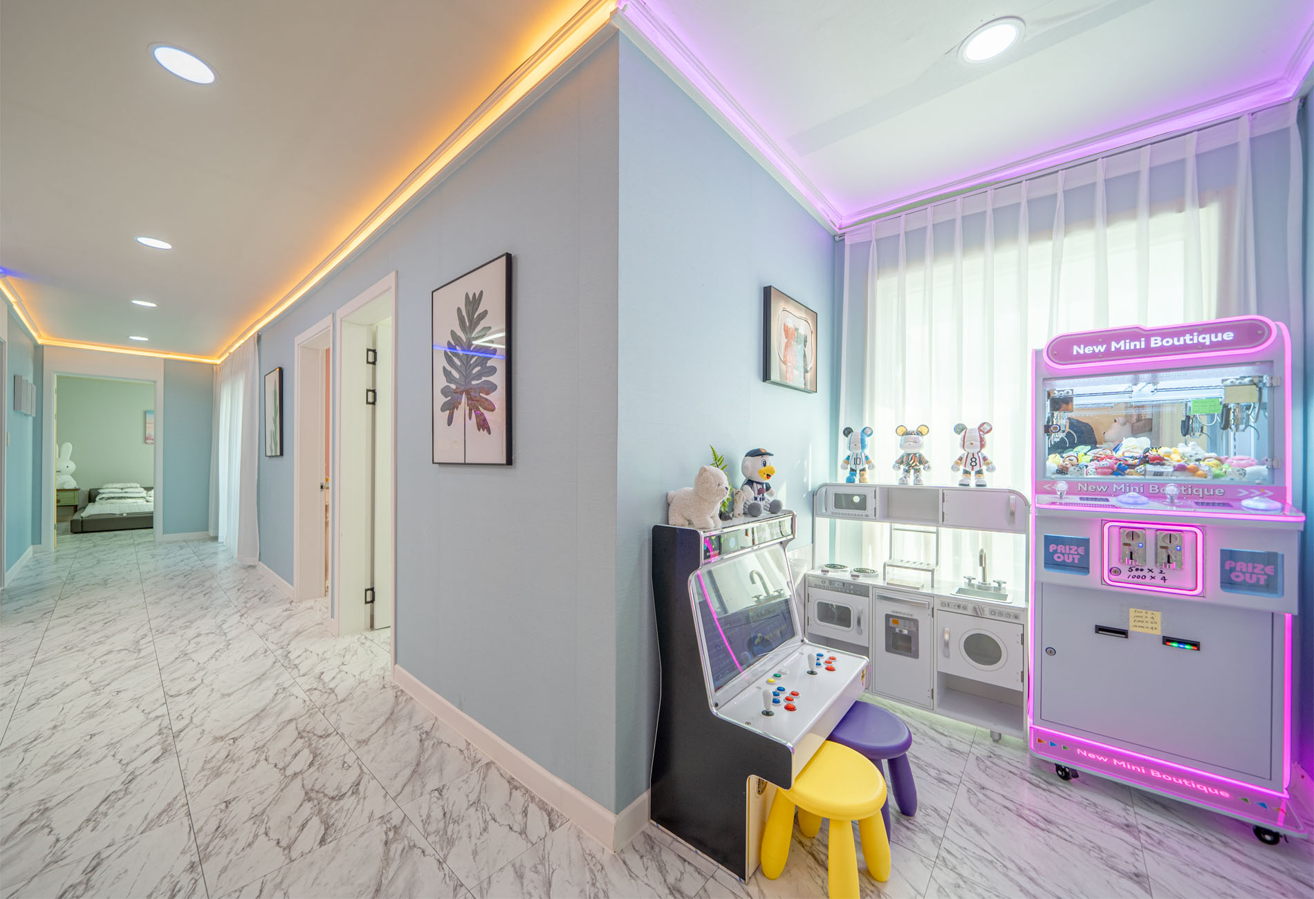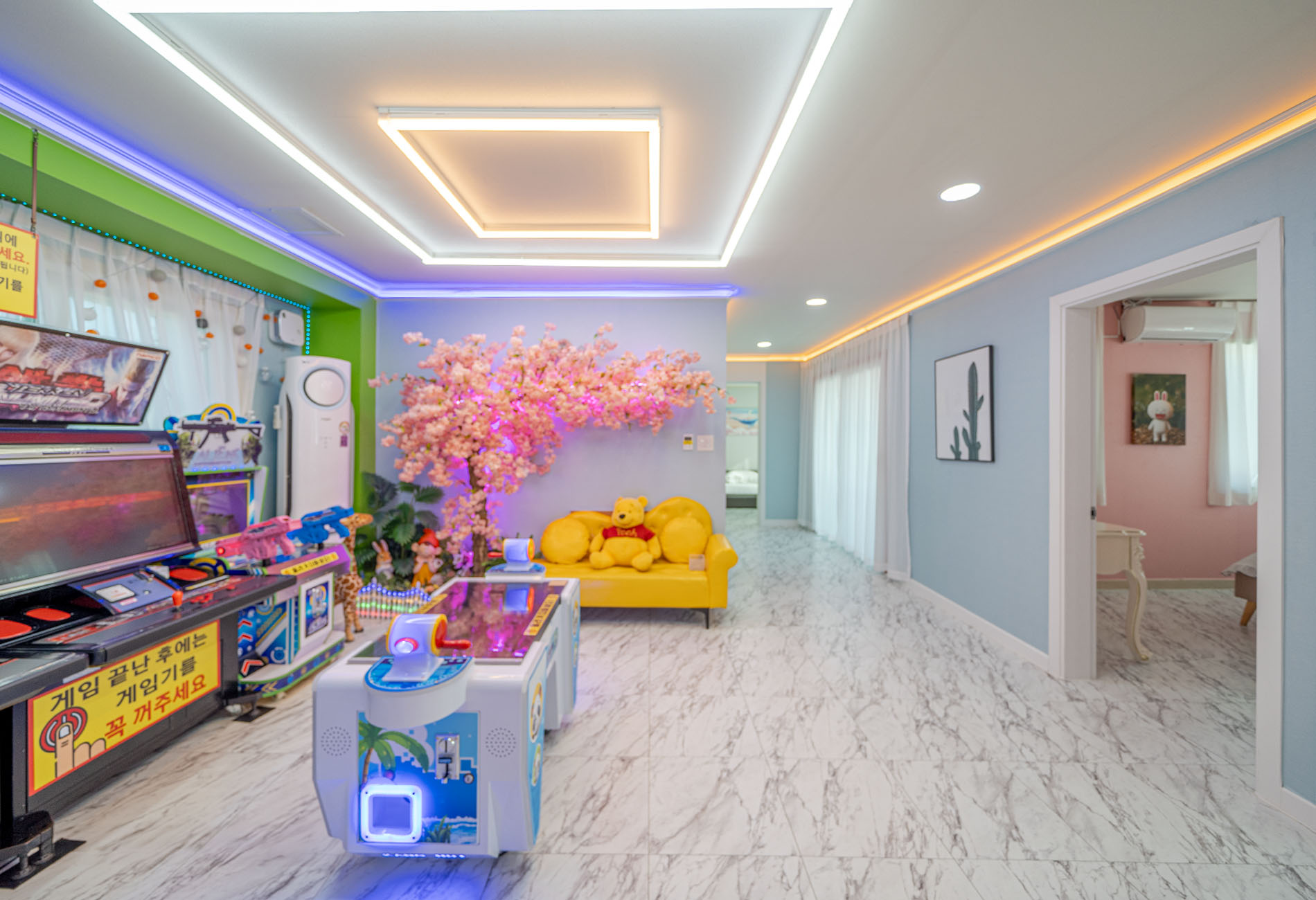 거실, 침대방4, 화장실1, 오락기2, 총 게임기, 낚시 게임기,인형뽑기