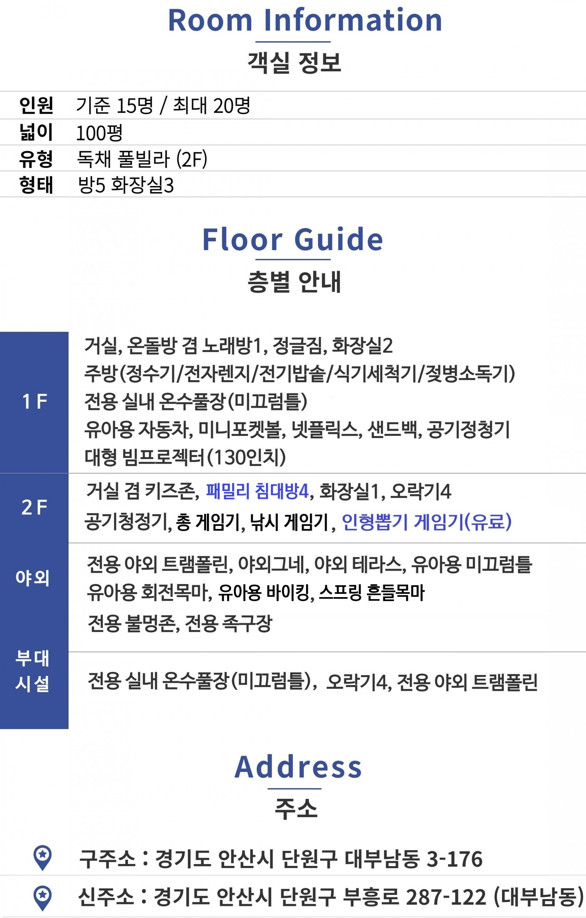거실,온돌방 겸 노래방1, 화장실2, 키즈존(정글짐), 실내 온수풀장, 실내 바베큐장