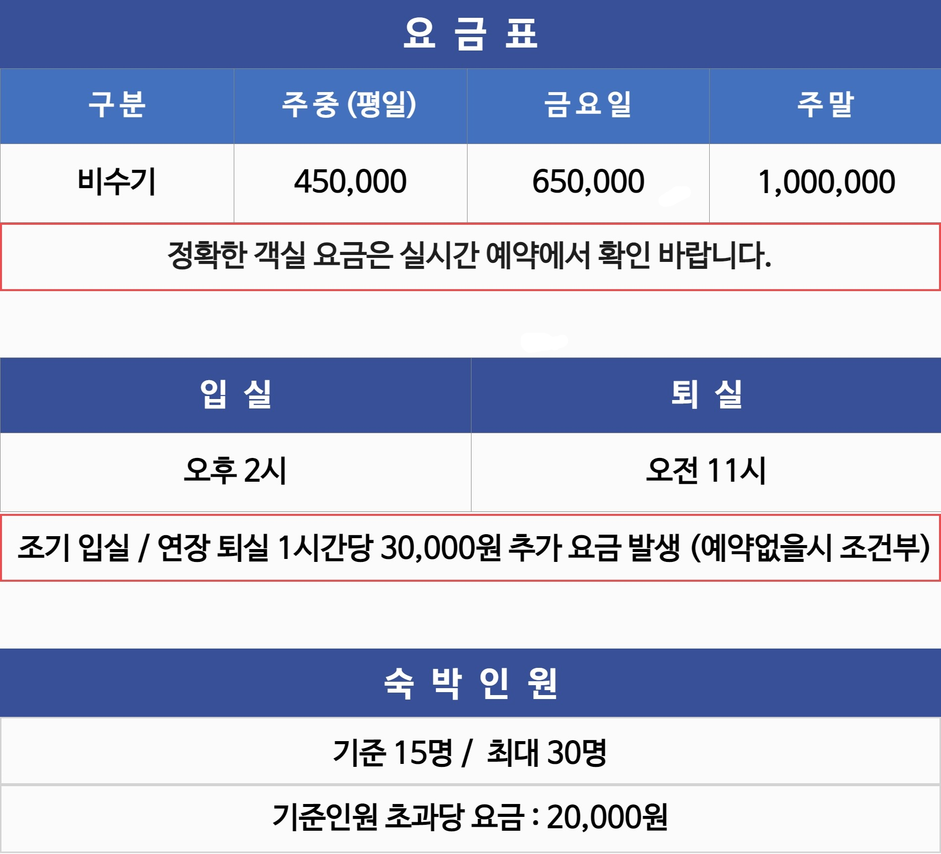 워크샵, 가족, 커플여행 등 다양한 컨셉의 펜션예약이 가능하며 펜션 내 개별 풀장, 전용 바비큐장, 노래방, 전용족구장, 스포츠 게임 등 다양하고 프라이빗한 여행을 즐기실 수 있습니다.